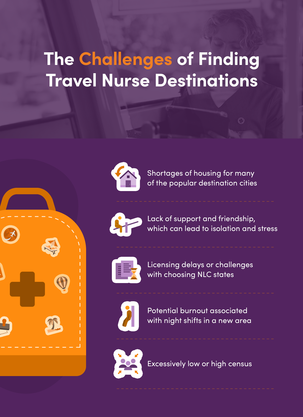 It's helpful to know what you want. However, having a clear idea of what you're not looking for in a travel destination is equally important. This can narrow your short list of dream destinations and help you find the right place. Some of the most common challenges travel nurses face when moving destinations include: